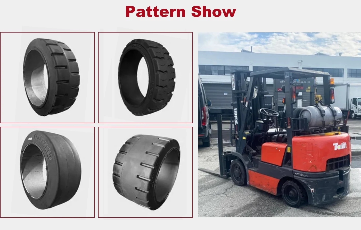 Press on Solid Tyres عبارة عن إطارات صناعية شاقة مصممة لتطبيقات الموثوقية العالية في شوكية ، ومقطورات منصات ، وممر طائرات ، وغيرها من المعدات الحرجة. هذه الإطارات مصممة بنظام تصاعد فريد مناسبة للضغط ، توفر هذه الإطارات ثباتًا فائقًا ، ومخاطر انحراف صفر ، والحد الأدنى من الصيانة ، مما يجعلها مثالية للبيئات التي يكون فيها التوقف مكلفًا والسلامة غير قابلة للتفاوض.
